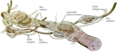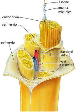 All’interno del fascio nervoso sono presenti anche alcuni piccoli vasi sanguigni che trasportano le sostanze nutritive e l’ossigeno. I neuroni sensoriali trasportano verso il sistema nervoso centrale le informazioni acquisite dall’ambiente esterno, attraverso gli organi di senso, e dall’ambiente interno, attraverso i recettori degli organi interni. I neuroni motori svolgono la funzione di veicolare ai muscoli e agli organi interni la risposta elaborata dal sistema nervoso centrale.