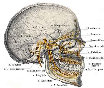 Il nervo trigemino (nervus trigeminus) è il 5° paio dei nervi cranici, nervo misto, ma prevalentemente con funzione sensitiva.
