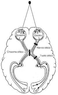 Gli assoni delle cellule gangliari si riuniscono in modo da formare il nervo ottico, un cavo che conduce l’informazione visiva fuori dalla retina fino ai centri superiori, dapprima al corpo