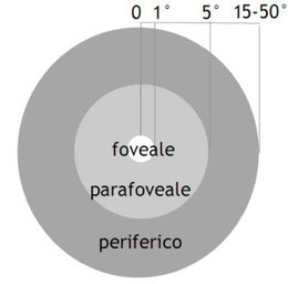 adiacente è di 2.5 mm: in questa zona il mosaico dei coni foveali funziona al massimo delle sue possibilità; è del resto abbastanza intuitivo che un campionamento fitto (molti recettori/mmq)