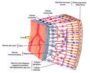 bipolari, amacrine e ganglionari – che sono variamente connessi fra di loro ed effettuano una prima elaborazione del segnale visivo.