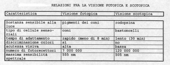 sensibilità dei fotorecettori aumenta molto lentamente (fenomeno dell’adattamento), raggiungendo il massimo dopo circa 30 min (visione scotopica mediata soprattutto dai bastoncelli).