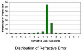 Questa è la rifrazione normale dell'occhio, considerata tale perché pei bisogni della vita risponde meglio che nell'occhio miope, nell'occhio ipermetrope, nell'occhio astigmatico (occhi ametropi). L'occhio emmetrope è di forma pressoché sferica, con un diametro di circa 23 mm. e con un potere di rifrazione tale che gli permette di vedere bene gli oggetti lontani. Comunemente si dice che l'occhio emmetrope è disposto per distanza infinita, ossia per quei raggi paralleli provenienti dal cosiddetto punto remoto. Per semplicità, possiamo considerare a distanza infinita un oggetto posto oltre i 5 metri; questa, per l'occhio umano, è una distanza sufficientemente grande poiché i raggi dalla quale provengono possano essere considerati paralleli.